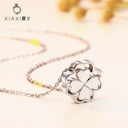 【情人节礼物】国标925银,五层电镀铂金,手工抛光,幸运四叶草,双层设计,好运成双,气质女神范~代写贺卡+鉴定证书+专柜礼盒