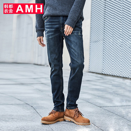 AMH男士弹力修身休闲牛仔裤,面料采用98%棉+2%氨纶,柔软亲肤,自由舒展不紧绷,韩版修身小脚款式,年轻百搭。
