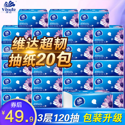 【原生木浆!维达 无香型 家用抽纸 20包 券后49.9元包邮】