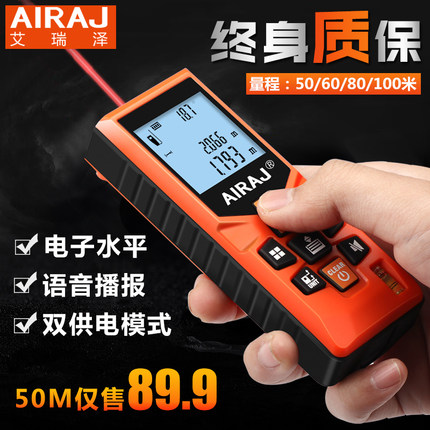 【艾瑞泽 高精度红外线激光测距仪电子尺(第一款)券后69.9元包邮】