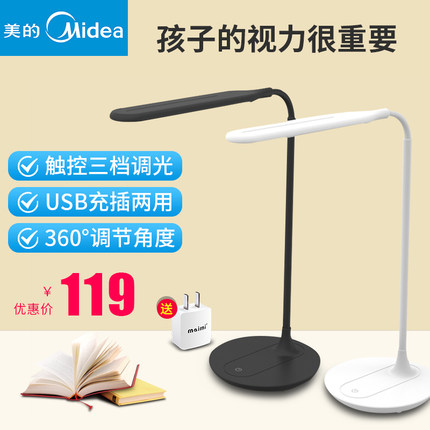 美的 USB充电式 简约LED台灯,天猫 日耀世纪家居专营店售价¥119,叠加¥40优惠券,券后实付¥79包邮到手,双色可选,送3C插头。