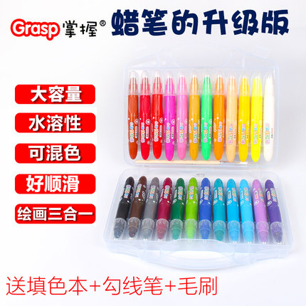 掌握 儿童 水溶炫绘棒 12色 ,口红式旋转,无毒不脏手,可水洗,笔触细腻,上色均匀,报价14.9元,可用3元券,实付11.9元