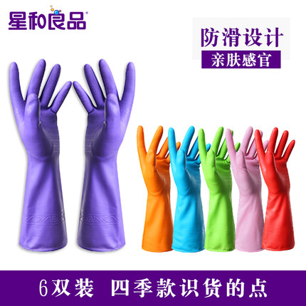 星和良品 加厚防水 洗碗手套,PVC材质,柔软厚实,手感舒适,手掌防滑纹路设计,拿物品不打滑,耐磨耐用,商家领券拍下12.9元包邮