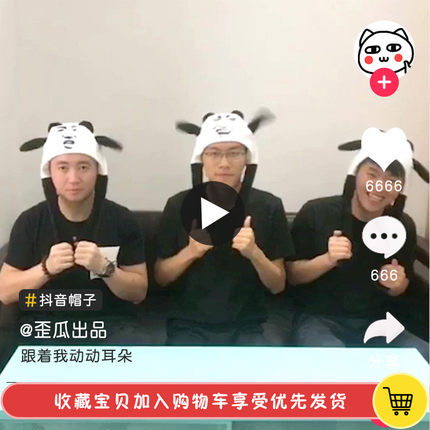 天猫歪瓜出品旗舰店售价59元,可领20元优惠券,券后实付39元包邮,现货。抖音同款,热门兔子帽,有兴趣的饭粒可以看看!抖音同款,一捏就会动耳朵的帽子,有可爱的兔子、猫咪款,也有鬼畜的金馆长、张学友、拳王款,谁戴谁萌。