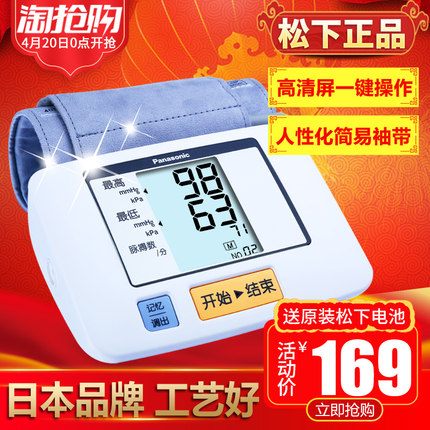 松下 家用全自动 臂式电子血压计,大品牌松下出品,一键测压,人性化卷绑式袖带,爸妈操作更简单,大数字显示,高血压警示,商家领券拍下129元包邮
