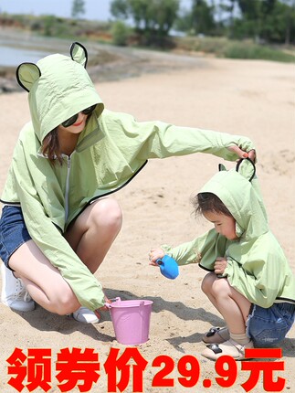 西靡亲子款防晒衣,选用防晒面料,防晒亲肤,便携速干,防晒帽檐,谁说防晒披肩不能穿出时尚,送运费险~