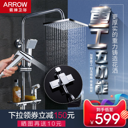 这款箭牌AEHHS044T花洒套装包含:雨淋式顶喷+柔肤SPA手喷+妇洗增压喷枪,有四种模式,分别是花洒顶喷、重工手喷、龙头出水,增压喷枪,还运用8大升级技术。目前天猫商家报价749元包邮,点此领取210元优惠券,实付539元到手,历史新低价,有家装需求的买手们可以考虑。本品注入空气技术,水与空气混合,形成饱满的颗粒,犹如天然雨淋,力道均匀的拍打紧致的肌肤,柔肤舒压。甄选精铜原料,用力非常实在,历久弥新。多层PVD晶钻电镀,共10级,耐磨耐热,手感细腻有光泽,质感很好。