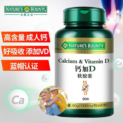 【自然之宝液体钙加维生素D软胶囊90粒 卷后19.9元包邮】