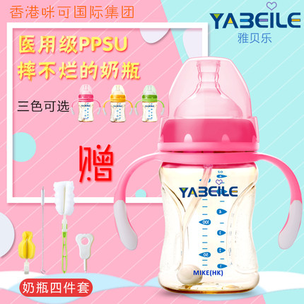 雅贝乐 宽口径 带手柄婴儿奶瓶 160ml,安全无毒材质,硅胶仿真奶嘴,不含双酚A,安全可靠,自然柔软,有利于宝宝自然进食,报价59元,可用10元券,实付49元