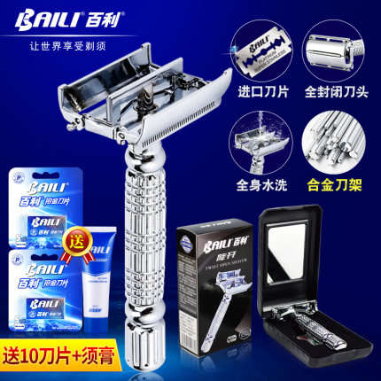 经典的手动剃须刀,采用全合金材质打造,表面电镀防止锈蚀。刀头全封闭设计,刀片更换方式不同于以前的螺丝拆卸,而是通过手柄底部旋钮打开刀架,更换快捷安全,清洗也方便。baili百利旗舰店售价38元,可用5元优惠券,实付33元包邮。