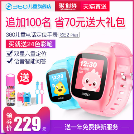 360儿童 SE2 Plus 儿童智能定位电话手表,天猫360儿童旗舰店特价249元包邮,可领取50元优惠券,券后199元包邮,送吊坠+贴膜,超值!月销量4300+,2色可选,双星6重定位,语音智能问答,超大全彩触屏,双向语音通话,碰一碰即可加好友,上课禁用、一键SOS、闹钟,P65防水,静置状态可待机5天以上,正常使用待机3天以上,莹透布丁表带通过美国FDA认证,支持移动、联通2G卡。