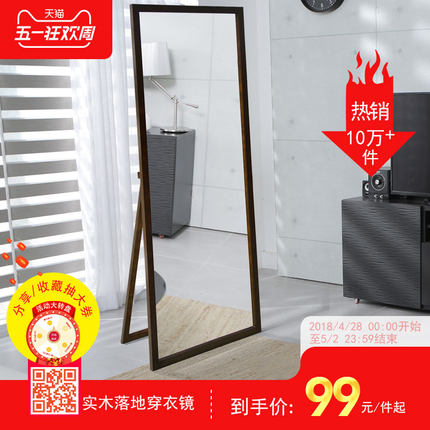 【玉晶 实木穿衣镜 落地镜 有支架 镜片面有防爆膜 154*34.3cm 89元】