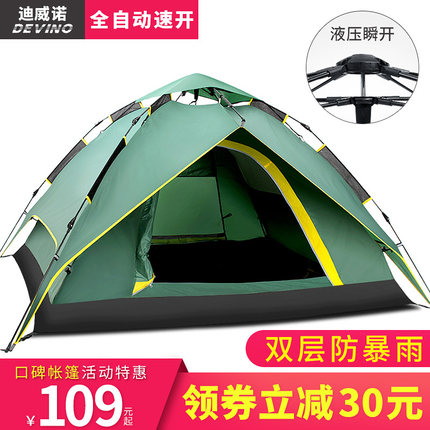 这款帐篷双层全自动2秒速开,空间大,适合3~4人使用。目前天猫商城售价¥109起,多色可选,点此领取¥30优惠券,实付¥79元起包邮。