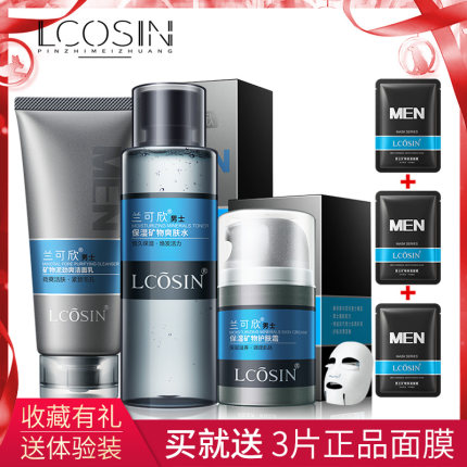 超值护肤6件套 男士控油洁面乳+保湿爽肤水+控油保湿面霜+3片补水面膜,深层清洁,补水保湿,收缩毛孔,这一套唤醒你的肌肤神采。