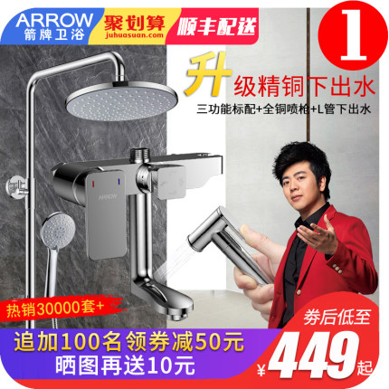 此款包含9英寸圆形顶喷、三控出水手喷、不锈钢软管、置物架、三控精铜铸造龙头、加厚淋浴管等,适合家用。专卖店499元起,可领50元券,旗舰置物款实付449元包邮。