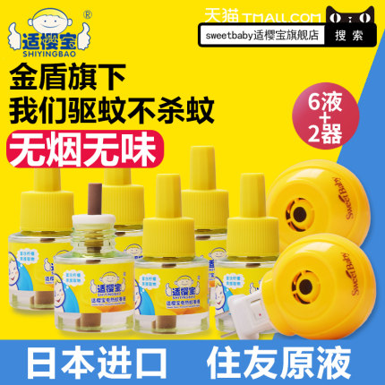 日本住友进口原液配置,6液+2加热器套装好价,目前天猫商城适樱宝旗舰店电热蚊香液6瓶+2个加热器套装,售价¥78,可使用店铺¥40优惠券,实付¥38包邮, 温和驱蚊,无烟无味又安全,无添加化学成分,孕婴适用。