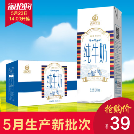 【高原之宝 西藏 犏牛全脂纯牛奶200ml*12盒 34元】