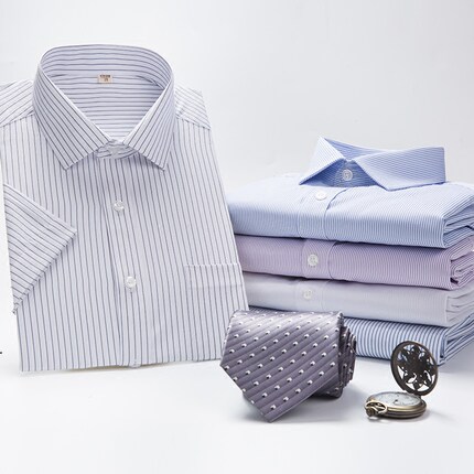 灿鹿 男士夏季条纹短袖衬,经典条纹,韩版修身,商务造型,绅士风格,彰显精神干练。