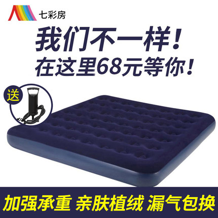 单人款尺寸73*191*22cm,配送充气泵。充气床垫弹性舒适,不用时可以折叠收纳,可平常打地铺使用、在帐篷里使用等,舒适度好,轻便省地。七彩房旗舰店68元,可领30元券,单人款实付38元包邮。