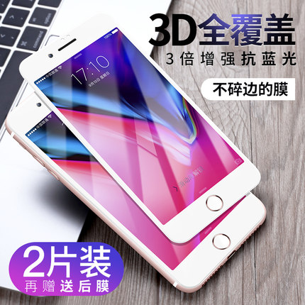 iphone6苹果7手机钢化膜,两片装,相当于买一张送一张,买后再送后膜,全新升级新覆盖,15天超长售后,放心购!