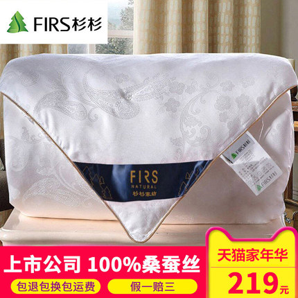 杉杉家纺旗舰店219元起,可用120元券,1.5米3斤款实付99元包邮,基于价格推荐。还有1.8米/2米/2.2米尺寸可选。100%桑蚕丝填充,轻柔舒适,透气吸湿,舒适度超高