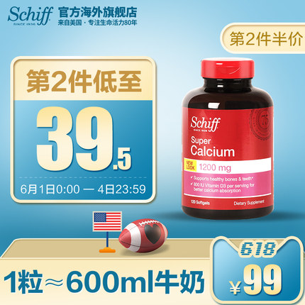 【美国Schiff液体钙氨糖搭档 120粒 券后69元包邮】