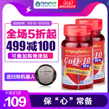 美国进口原装,辅酶Q10软胶囊50mg*60粒*2瓶装,安心宝coq10,超高吸收技术,给心肌持续供氧,保护心脏保健品。