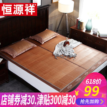 恒源祥 可折叠双面竹凉席,精选5~8年老竹头层竹青作为竹丝材料,粗细均匀,韧性强;正面镜面水磨竹席面,经过高温碳化处理,目前139元在售,领取一张30元优惠券后,69元包邮到手,历史新低