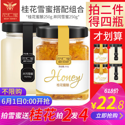 【花汇宝 桂花蜂蜜250g+雪蜜250g 券后16.9元包邮】