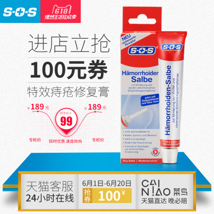 这款痔疮膏,德国原产,针对大便出血、大便疼痛、直肠坠痛、肿物脱出、瘙痒等情况有良好的效果。SOS海外旗舰店99元,可用10元优惠券,实付89元到手