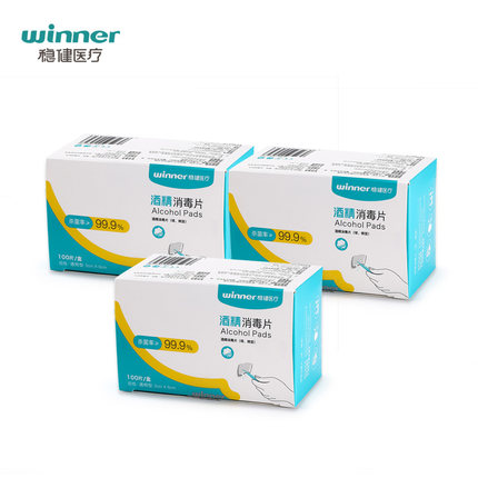 【稳健(Winner) 一次性酒精棉片消毒棉片 100片*3盒 20元】
