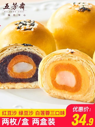 五芳斋 手工蛋黄酥 2个*2盒,大牌五芳斋,真材实料的美味蛋黄酥。足足72层酥皮,细腻绵密的豆沙,鲜香咸蛋黄,Q弹麻薯心,四层用料,入口酥松,好吃看得见。商家售价34.9元,可领20元券,拍下14.9元包邮