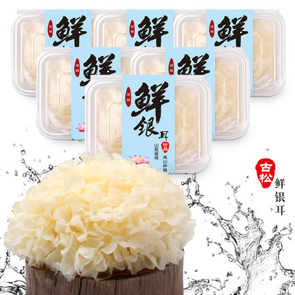 古松旗舰店新鲜银耳白木耳鲜活雪耳6朵,售价¥32.8,可使用店铺¥5优惠券,实付¥27.8邮,产地直接采摘发货,顺丰空运,保证48小时内到货,10分钟出胶,20分钟炖糯的银耳