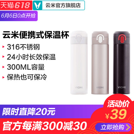 316不锈钢材质,超微波内胆镀铜,保温保冷效果更好。真空隔热内胆,延长保温时间。云米旗舰店目前售价39元,持平近期单买直降好价,300ml便于携带,满足日常外出饮水量。