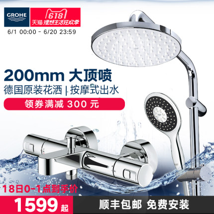 【高仪 34337+27389 高仪恒温花洒套装 1769元】