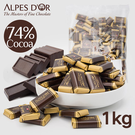 【瑞士进口 Alpes d’Or 爱普诗 74%可可脂纯黑巧克力 1kg 158元】