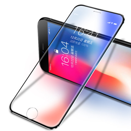iphone6/7/8系列通用,纳米强化防爆钢化膜,全屏不碎边,高清透光,手感顺滑,强抗指纹,不翘边无白边,完美贴合无缝隙!