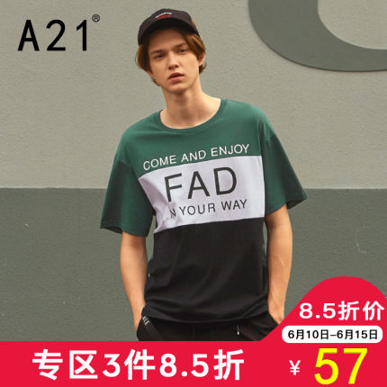这款男士T恤天猫商城A21旗舰店售价¥67,可领取店铺¥20优惠券,券后实付¥47包邮,尺码齐全,累计评价近400,4.9分好评,口碑不错。