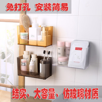 无痕壁挂式透明置物架,透明设计,不遮挡放置物,拿取方便,大开口方便取用,底部镂空,沥水干净,无痕吸附,承重力强,两侧镂空提手,方便搬运,多色可选!【赠运费险】