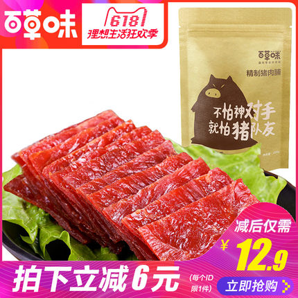 【小神价,可领3张券# 百草味休闲零食猪肉脯200g 拍下+券后9.9元包邮】