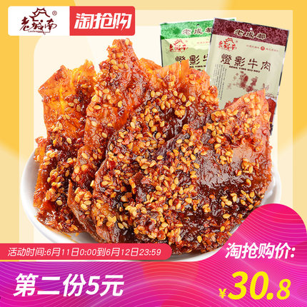 这款灯影牛肉片,目前天猫商城老城南旗舰店220g,售价¥30.8,第二件5元,还可使用店铺¥5优惠券,下单2件实付¥30.8包邮,五香/麻辣2口味可选,成都老字号,入口酥香,劲道有嚼劲。