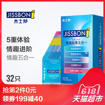 【杰士邦【避孕套五合一情趣32只套装】拍2件共70只 45.9元包邮】