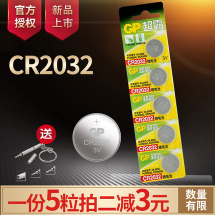 超霸 CR2032 纽扣电池 5粒装 ,强劲动力,持久耐用,玩具、摇控器、手表、汽车钥匙等多种场合适用,居家必备!商家报价10.9元,可用3元券,实付7.9元包邮。