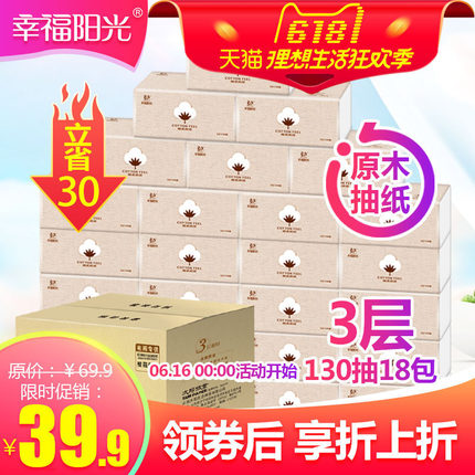 幸福阳光 绵柔3层家用抽纸 130抽*18包 30元