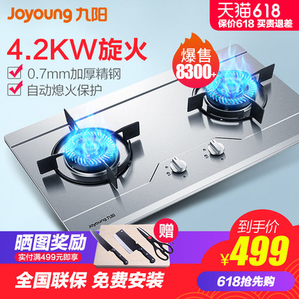 九阳(Joyoung) 不锈钢双灶燃气灶 台嵌两用 399元