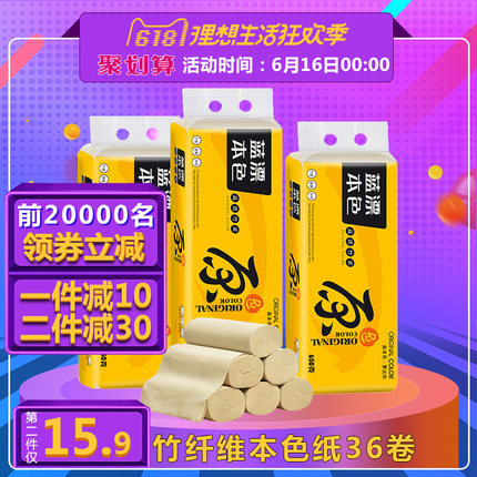 蓝漂 竹浆本色卷纸 4层*36卷,竹纤维原材料,柔韧细腻,柔厚4层,湿水不易破,包裹食物放心,天然本色,好用无纸屑,呵护家人健康。商家报价45.9元,使用20元券,实付25.9元包邮