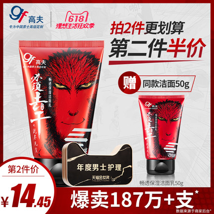 高夫(gf) 男士畅透保湿洁面乳 控油去黑头 80g+50g 第二件半价 24元