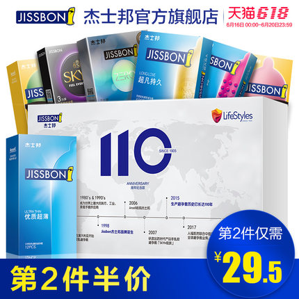 【Jissbon 杰士邦 110周年纪念礼盒 7种40只 避孕套 6.6折 ¥39 】