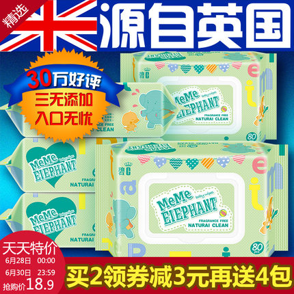 【碧c 带盖婴儿手口湿巾纸 80抽*5包 抗菌保湿 13.9元】