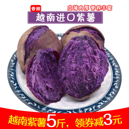 现挖越南进口小紫薯【5斤装】,放血冲量,正宗越南中紫薯,现挖现发,产地直供,日照充足,精挑细选,皮薄肉厚,软糯香甜,营养丰富,全程恒温保鲜,老少皆宜的美味!